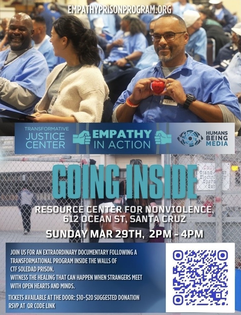 Come to the first-ever Santa Cruz County screening of the extraordinary new documentary "Going Inside: Empathy in Action" at the Resource Center for Nonviolence!